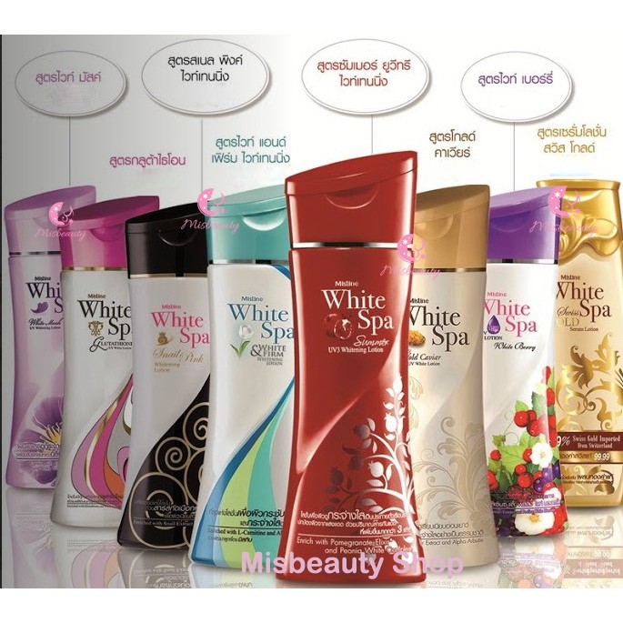 มิสทีน ไวท์สปา ไวท์ มัสค์ บอดี้ โลชั่น ฿ 109.00 โลชั่นบำรุงผิวกาย มิสทีน ไวท์ สปา สูตรโกลด์ คาเวียร์ ขนาด 400 มล. มิสทีน ไวท์ สปา สูตรโกลด์ คาเวียร์ พบกับนวัตกรรมใหม่ของโลชั่นบำรุงผิวกายและผิวหน้า ให้สัมผัสแห่งความนุ่มลื่นดุจใยไหม อุดมด้วยคุณค่า. Mistine white spa body lotion 400ml. ผลิตภัณฑ์ดูแลผิวกาย มิสทีน ไวท์สปา ซัมเมอร์ ยูวี ทรี ไวท์เทนนิ่ง.